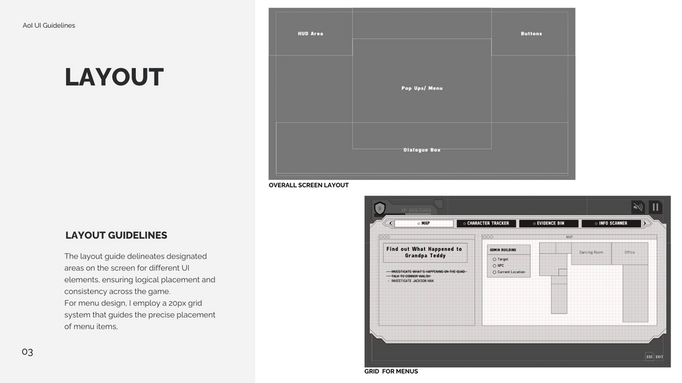 Creating a UI style guide was important in building the visual hierarchy throughout the game's interface. Building this system helped standardize colors, fonts, and layouts, ensuring a cohesive look and feel across all screens. It also made design process faster and easier by maintaining consistency across every element of the game.